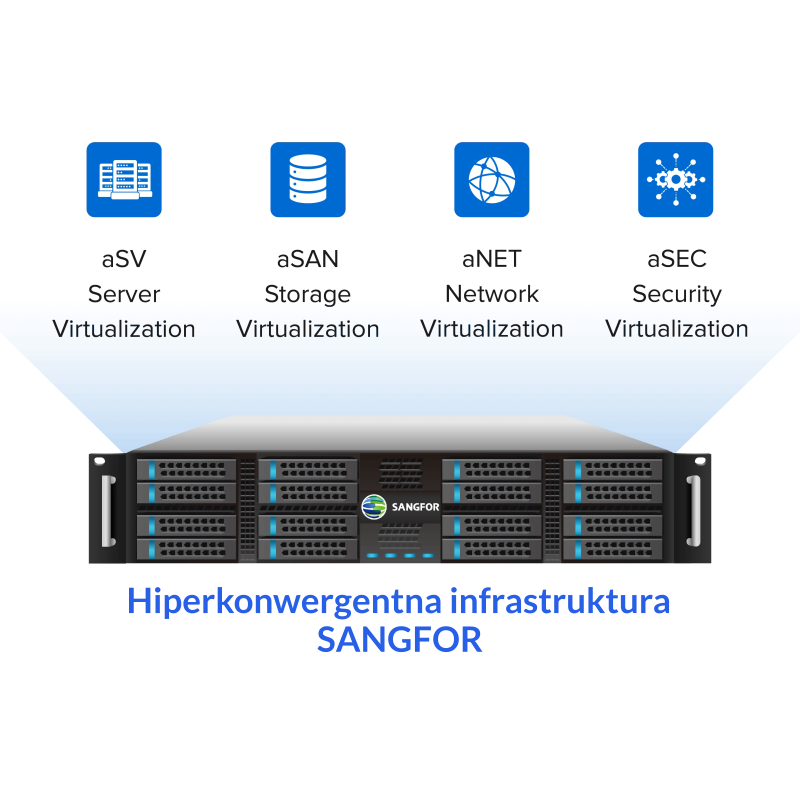 Hiperkonwergentna infrastruktura Sangfor (HCI) to cloud computing 3. generacji, która pomoże Ci zmniejszyć TCO o co najmniej 70%, uprości operacje i zwiększy bezpieczeństwo sieci. Łączy obliczenia, pamięć masową, sieć i bezpieczeństwo w jednym środowisku oprogramowania. Wybór Sangfor HCI to: